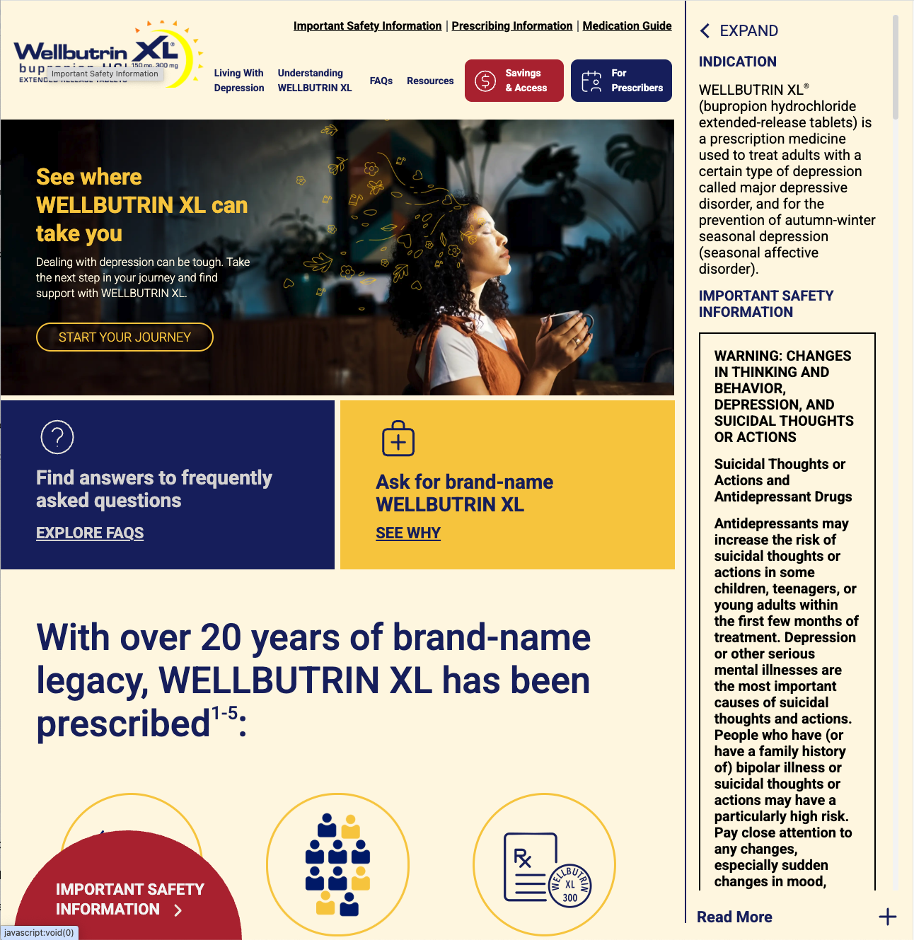 Led the redesign of Wellbutrin XL’s consumer-facing website to elevate and modernize the brand while maintaining alignment with established guidelines. Partnered directly with clients, presented creative concepts, and oversaw the Creative Director to ensure strategic and visual consistency. The result was a refreshed, user-friendly site that balanced brand heritage with a modern digital experience.